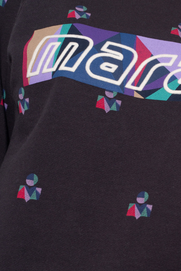 Navy and purple ‘Milly’ sweatshirt from Isabel Marant Étoile. Made of cotton, this garment features a multicolored printed logo pattern and ribbed trims at the crew neck, hem and cuffs.