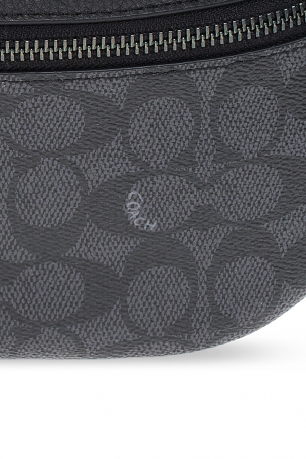 Grey and black belt bag from Coach. Crafted from monogrammed canvas and leather, this design features a zip fastening, an adjustable strap, black metallic hardware and one internal compartment with a slip pocket.