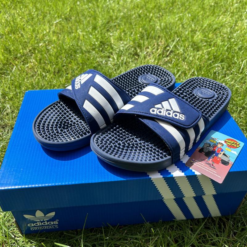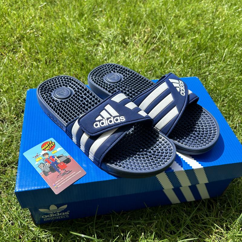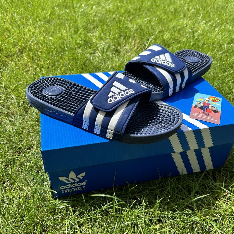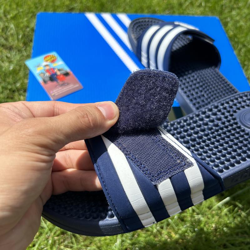 Женские синие шлепанцы на лепучке Жіночі шльопанці adidas Adissage з гнучкою масажною устілкою та зручним ремінцем, який можна регулювати.
