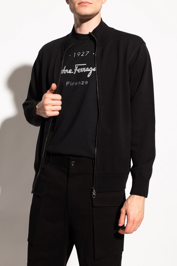 Black sweatshirt with a stand-up collar from Salvatore Ferragamo. Fastened with a zip, this garment is complete with two slip pockets and ribbed trims at the hem and cuffs.