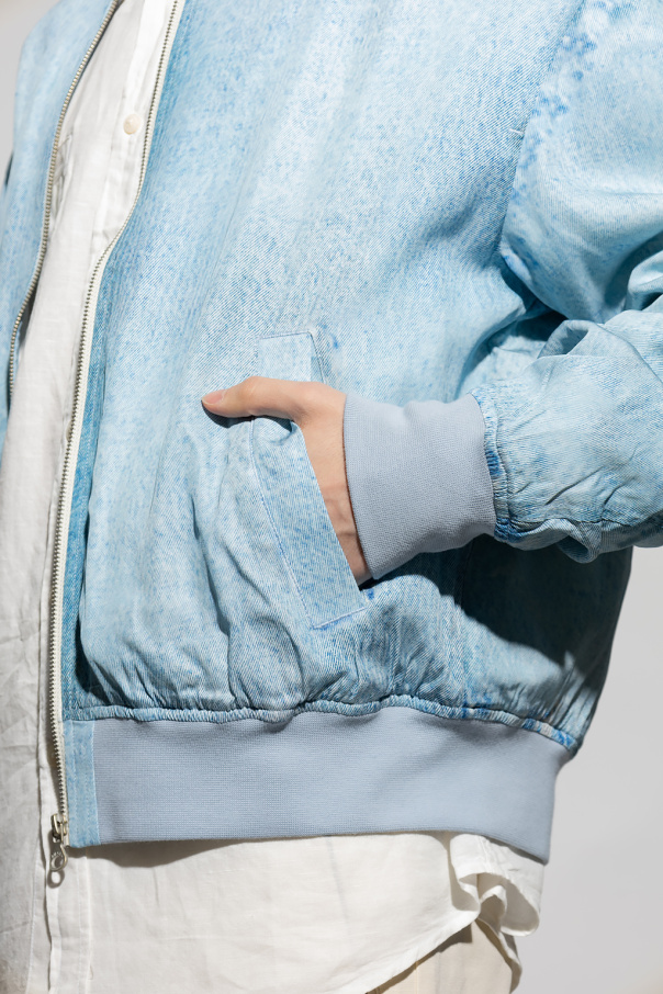 Blue ‘J-MAR’ jacket from Diesel. Fastened with a zipper, this style features a standing collar, two slip pockets, long sleeves and elasticized trims on the edges.