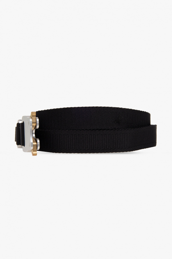 Black belt from 1017 ALYX 9SM. Made of calf leather, this item fastens with the brand’s signature Rollercoaster buckle in silver-tone and gold-tone.