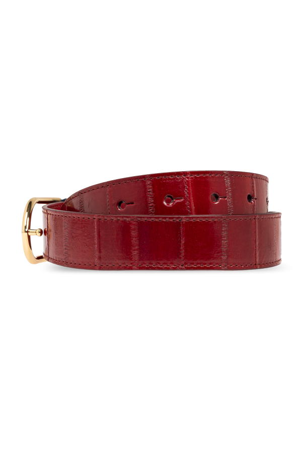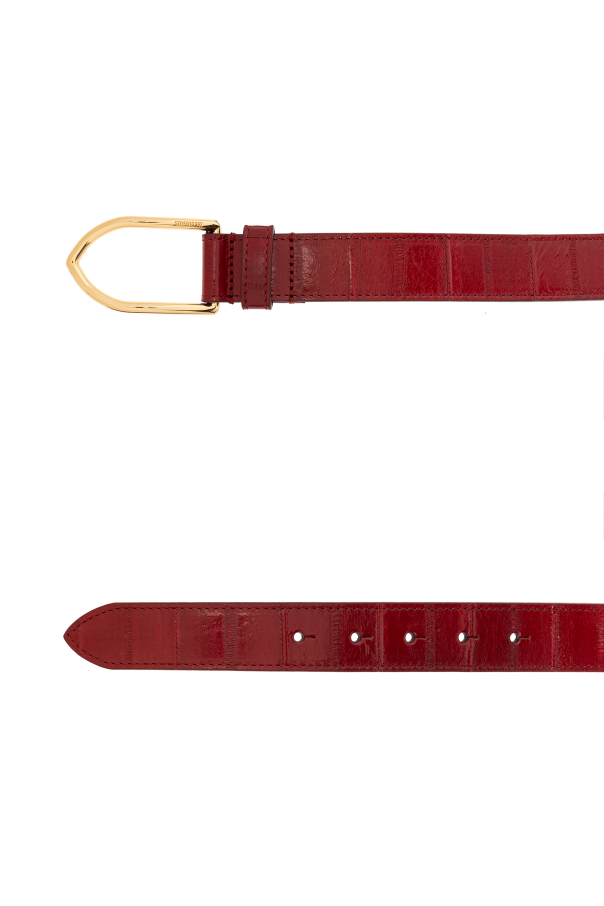 Introducing the Jacquemus Logo Belt from our exclusive clothing collection, a paragon of sophistication and style. Adorned in a dominant burgundy hue, this belt exudes an aura of refined elegance. Crafted from leather with a lustrous finish, the belt features a subtle crocodile texture, enhancing its luxurious appeal. The gold metal buckle, with its unique rounded shape and delicate engraving of the designer\'s logo, stands as a hallmark of exquisite design. This belt is notably wide, accentuating its unisex characteristic and ensuring it makes a bold statement. Equipped with multiple holes, it offers adjustable lengths for a perfect fit, while the gently rounded end adds a touch of finesse. This elegant accessory, suitable for both men and women, elevates any ensemble, whether casual or formal, into the realm of high fashion. Experience the harmonious blend of artistry and sensuality that defines Jacquemus\'s visionary aesthetic. Why Buy This Product? Luxurious Design: Subtle crocodile texture and gold metal buckle. Unisex Appeal: Wide belt suitable for both men and women. Adjustable Fit: Multiple holes for length adjustment. High-Quality Materials: Crafted from premium leather and metal. Signature Style: Unique design by acclaimed designer Jacquemus.