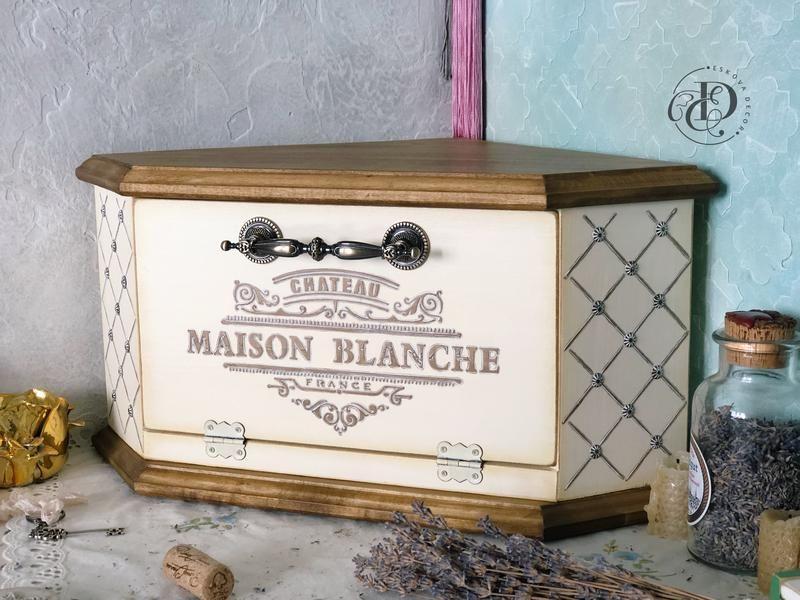 Дерев'яна кутова хлібник виконана в стилі Black Shabby, делікатно состарена.