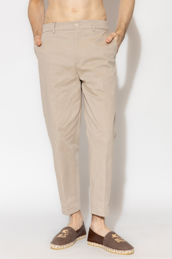 Greyish beige pleat-front trousers from Etro. Made of cotton, this pair features a zip fly with a button and four slip pockets throughout.