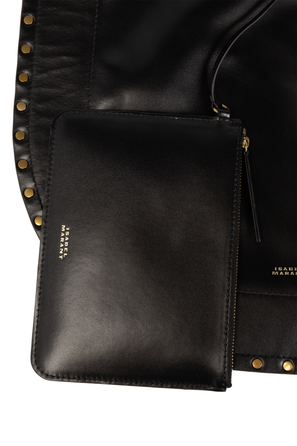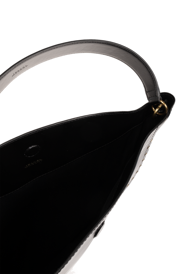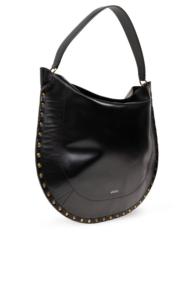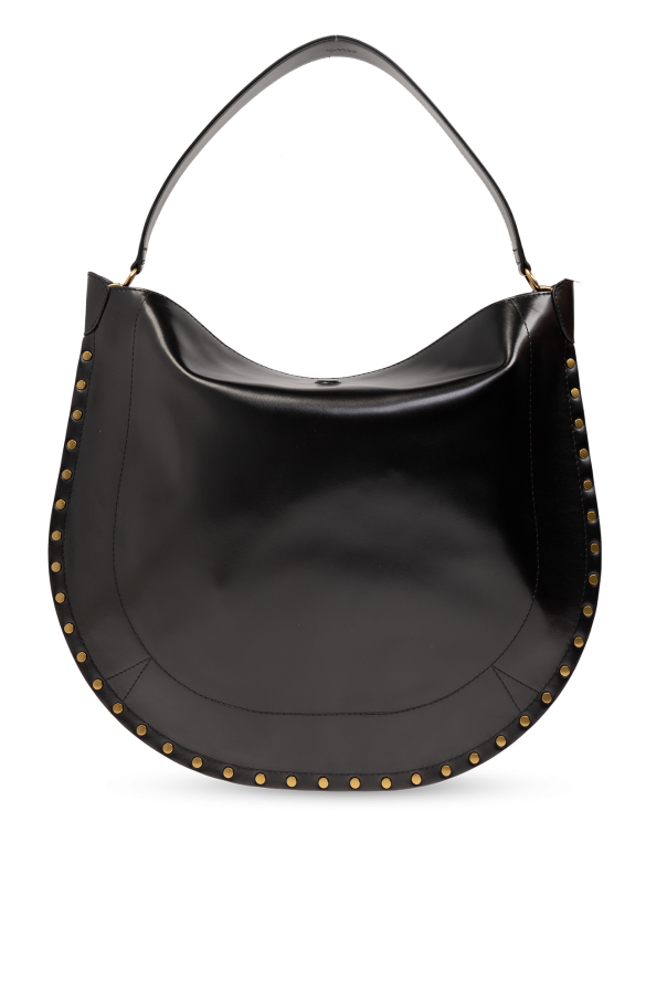 Black ‘Oskan’ shoulder bag from Isabel Marant. Made of calf leather, this model features a magnetic snap closure, studs, logo, shoulder strap, one internal compartment and gold-tone metal hardware.