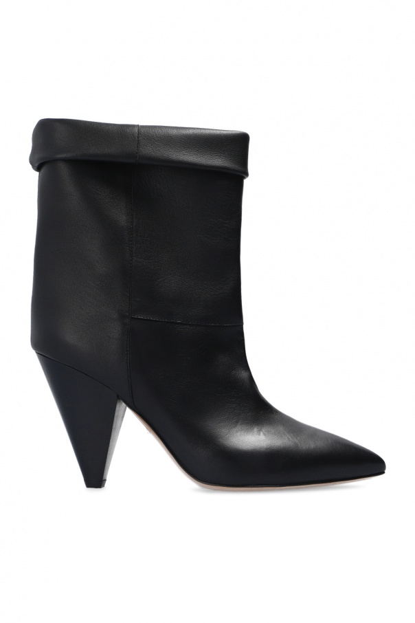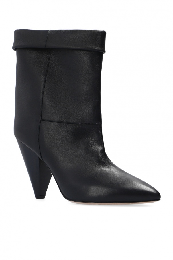 Black ‘Conic’ heeled boots from Isabel Marant. With a distinctive folder overlay, this lamb leather crafted pair features a slip-on silhouette set on a beige leather sole.