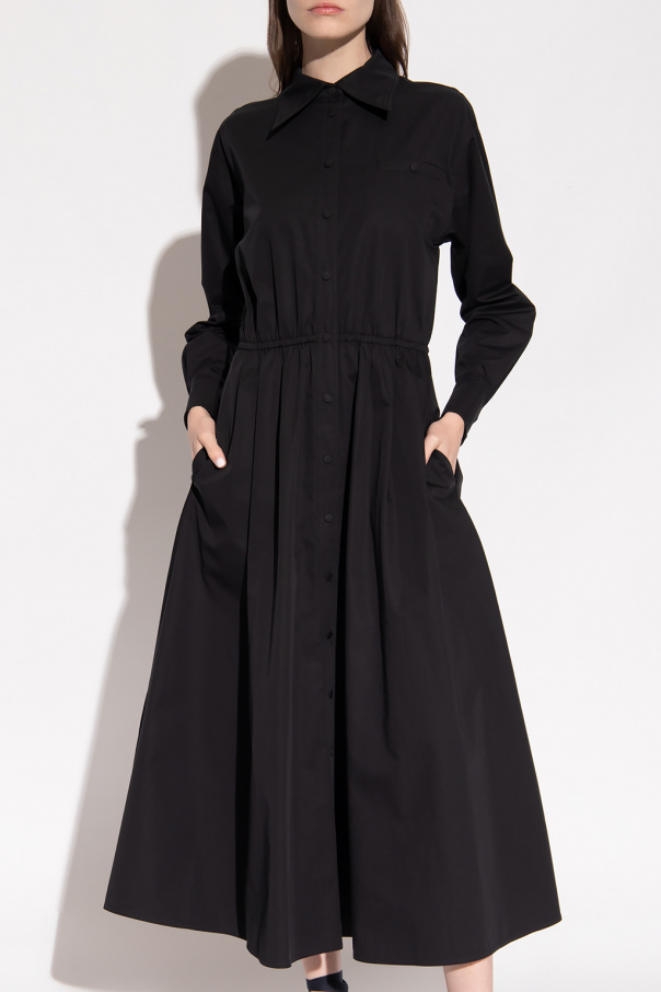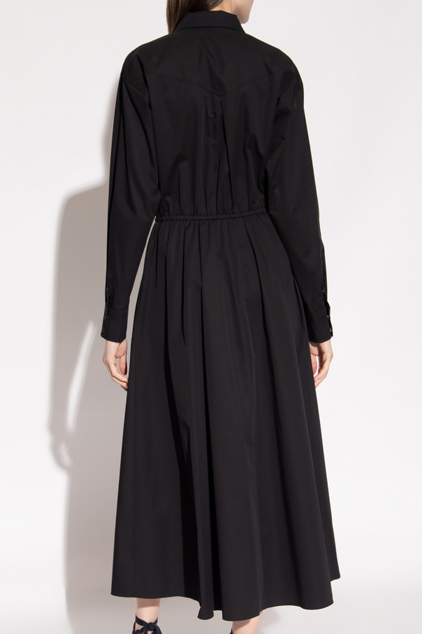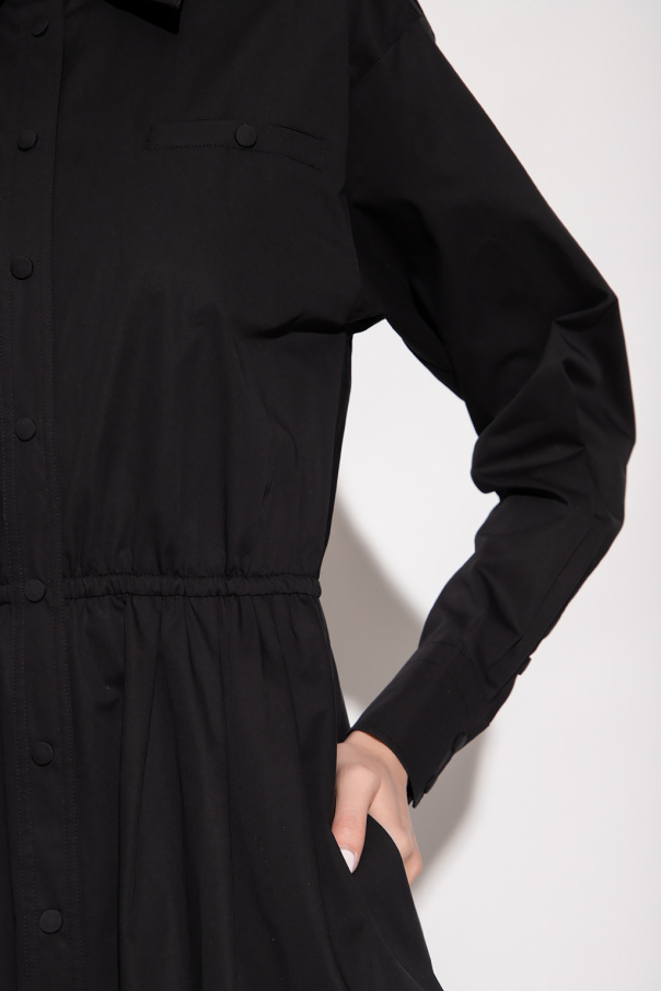 Black dress from Tory Burch. Crafted from cotton, this design features snap buttons, collar, decorative snap-fastened front pocket, elasticated waistband, side pockets and long sleeves with snap-fastened cuffs.