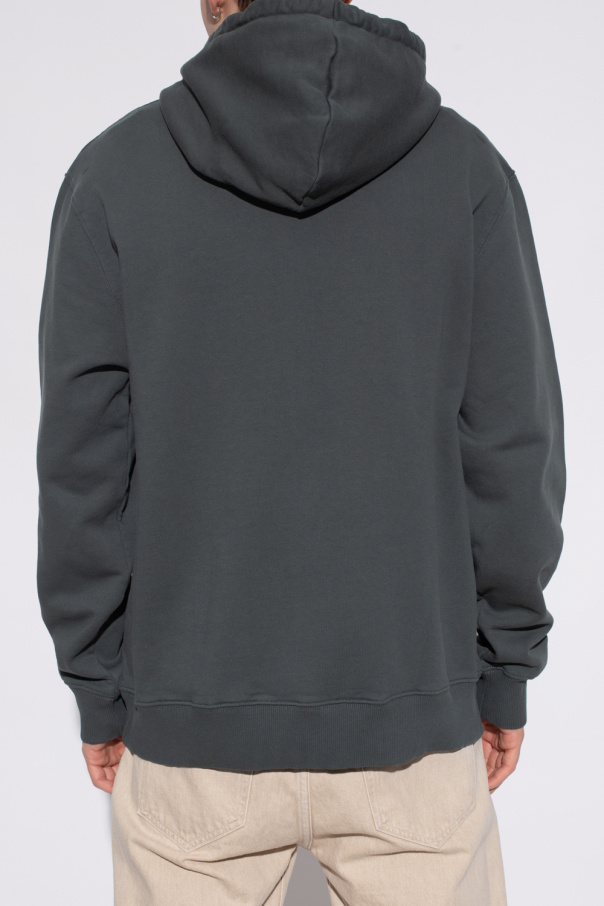 Dark green ‘Norsbro’ hoodie from Samsoe Samsoe. Made of cotton, this garment features a drawstring hood, white logo print and ribbed trims at the hem and cuffs.