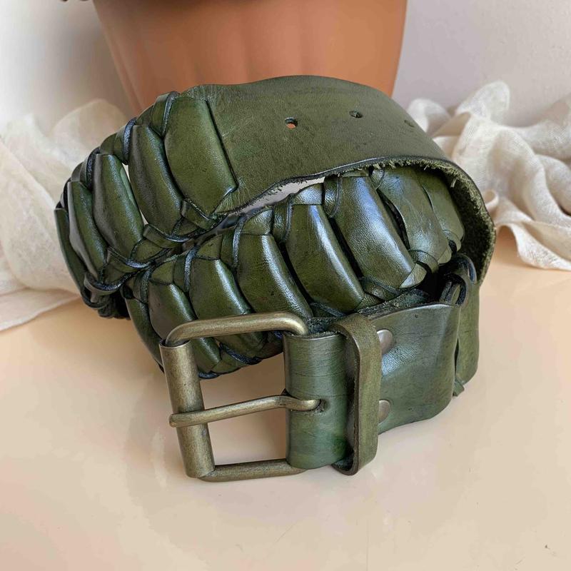 🍐🍐🍐 массивный качественный люксовый ремень BEKALOO 🇫🇷 Франция. 🍐🍐🍐Ремень секторальный, люксового сегмента, красивый болотно-зеленый цвет, массивная форма, качественная натуральная кожа, ручная работа. 🍐🍐🍐Ширина 5см, подойдет на размер от 87см до 97см. Ремень в отличном состоянии без нюансов и дефектов. К ремнюmon мешок брючин.