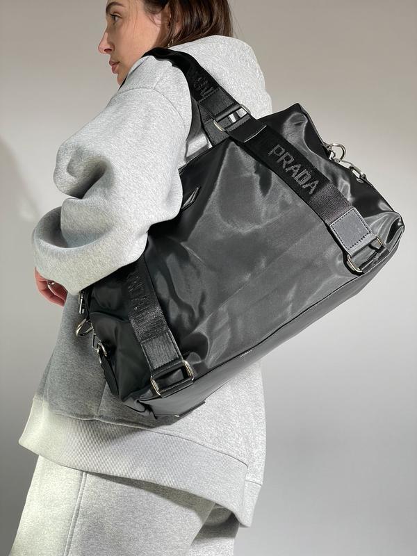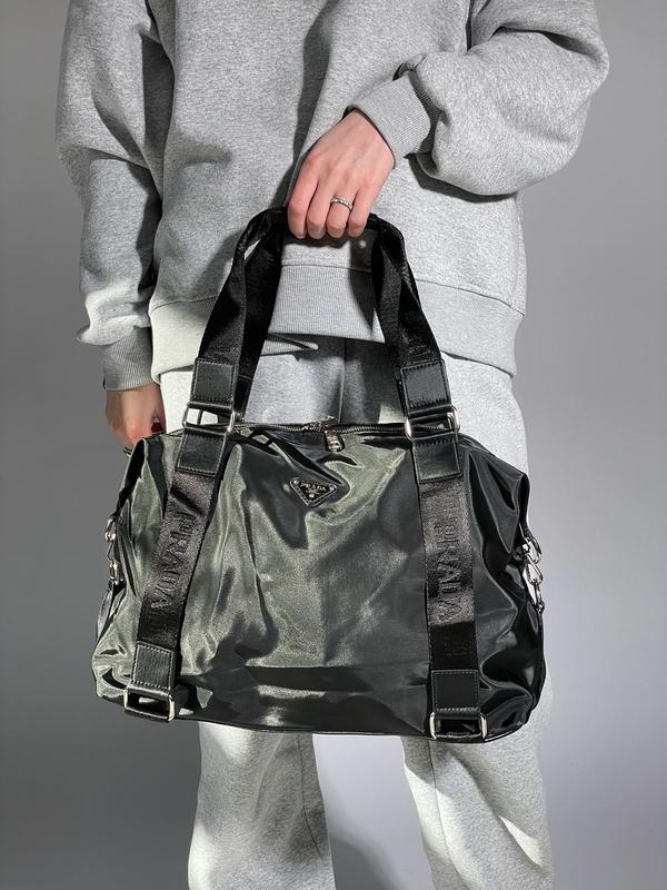 Сумка выполнена из нейлона в комбинации с текстильными ремнями.