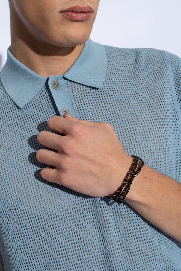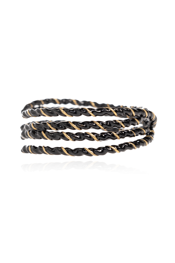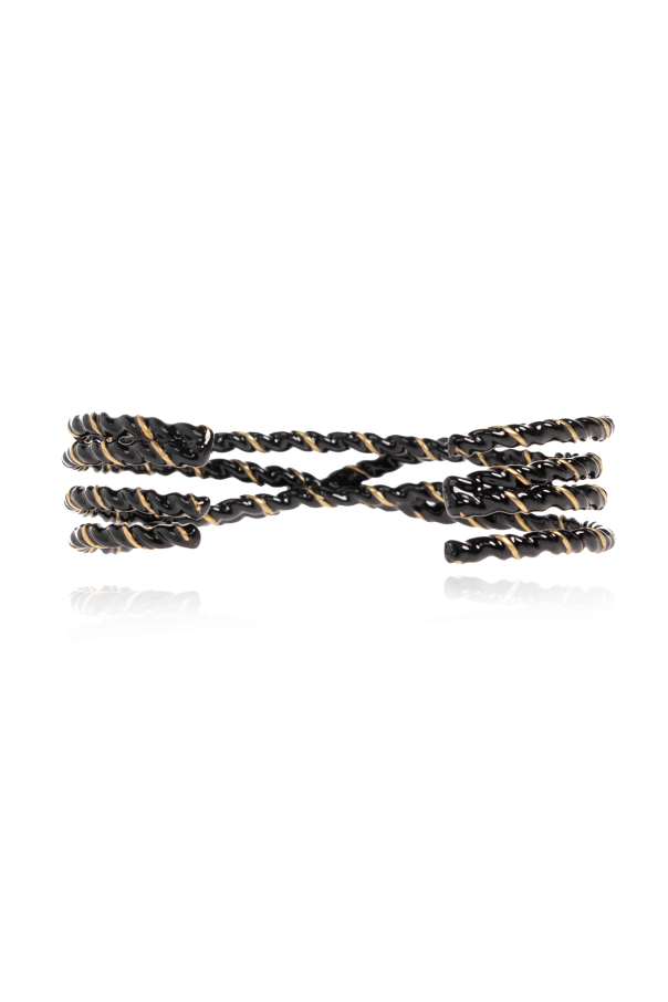 Black bracelet from Maison Margiela. Made of brass, this item showcases decorative laces.
