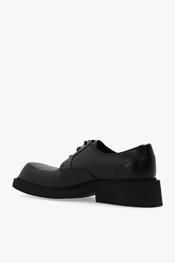 Black ‘Inspector’ Derby shoes from Balenciaga. Crafted from calf leather, this pair is complete with an embossed shoe size, square toe and black rubber sole.
