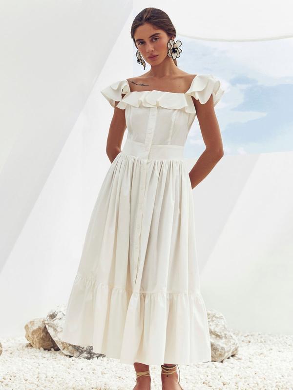 Зроблено в Україні?:Производство ,Материал:Хлопок ,Особенности модели:На бретельках ,Силуэт:Расклешенные ,Сезон:Лето ,Принт:Без принта ,Стиль:Романтический , Повседневный ,Декор:Рюши , - Shipping