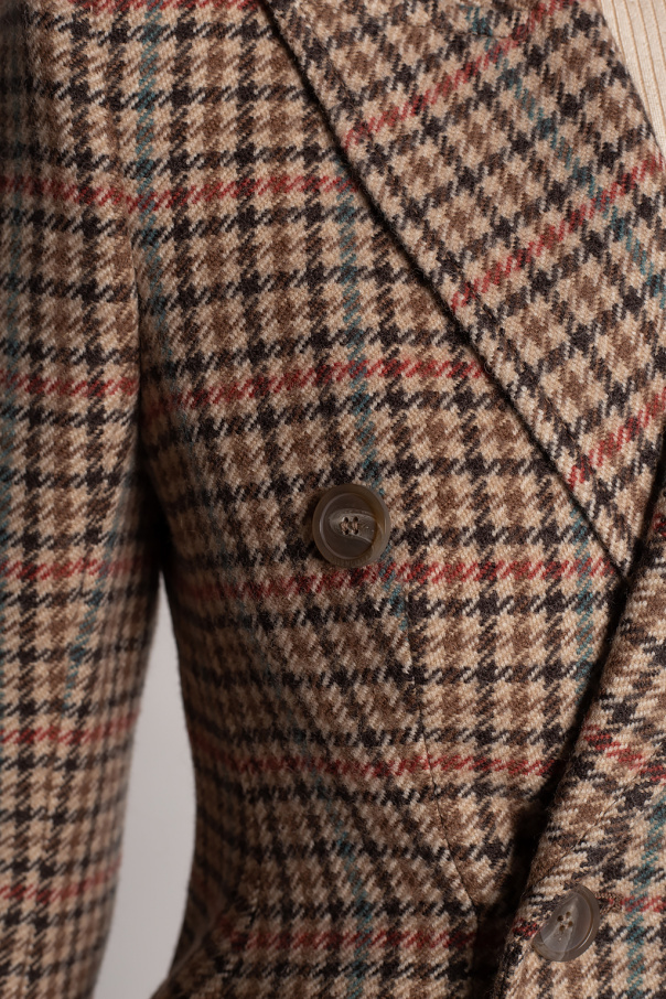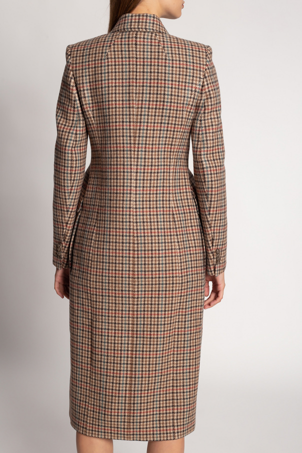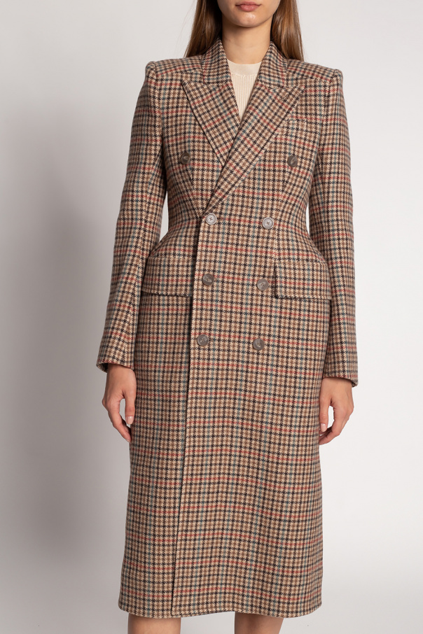 Multicolored double-breasted coat with peak lapels from Balenciaga. Made of wool, this garment features button fastenings, a houndstooth pattern and two flap pockets.