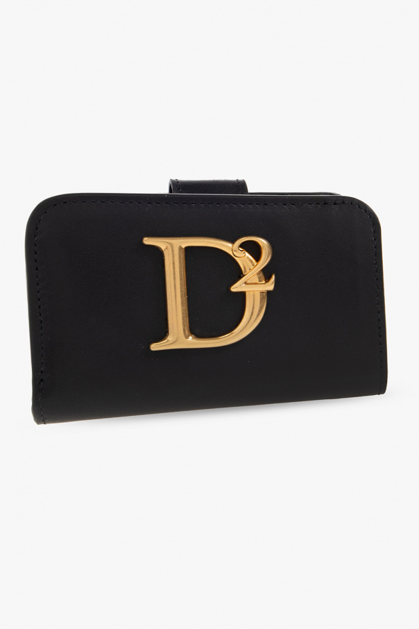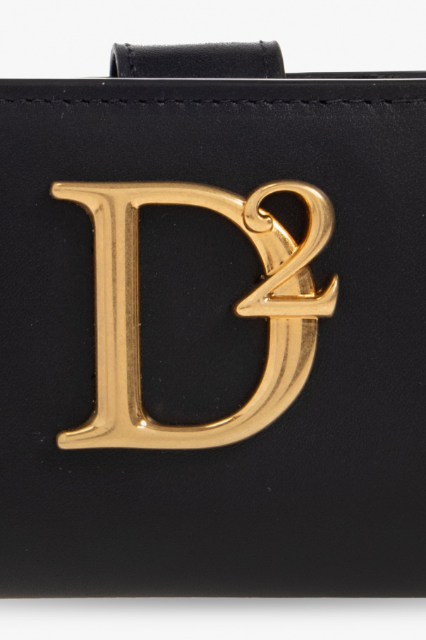 Black wallet from Dsquared2. Crafted from calf leather, this design showcases a metal logo plaque, one zip coin pocket, gold-tone metal hardware and one bill compartment, three slip pockets and six card slots inside.