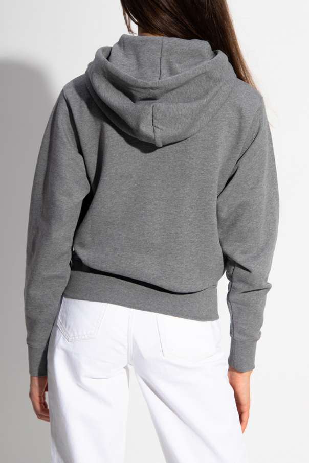 Grey sweatshirt with a drawcord-adjustable hood from Kenzo. Crafted from cotton jersey, this hoodie showcases an embroidered motif with the brand\'s logo, a kangaroo pocket and ribbed trims on the edges.