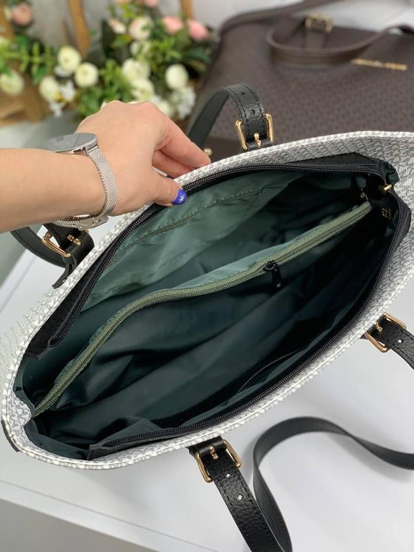 Один открытый карман и один карман на молнии. Кожзаменитель 32 см ширина по