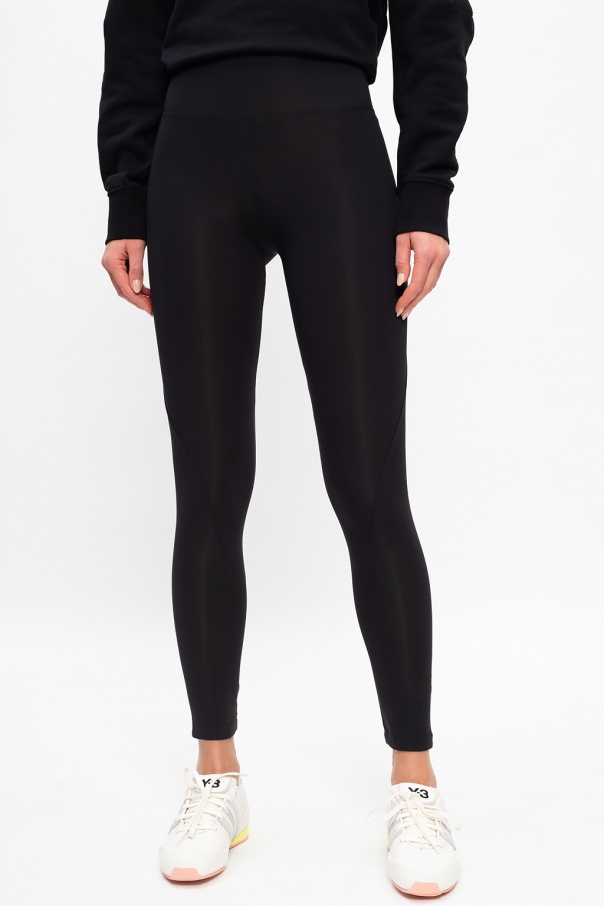 Black leggings from Y-3 Yohji Yamamoto. This design features an elastic waistband, logo print and back zip pocket.