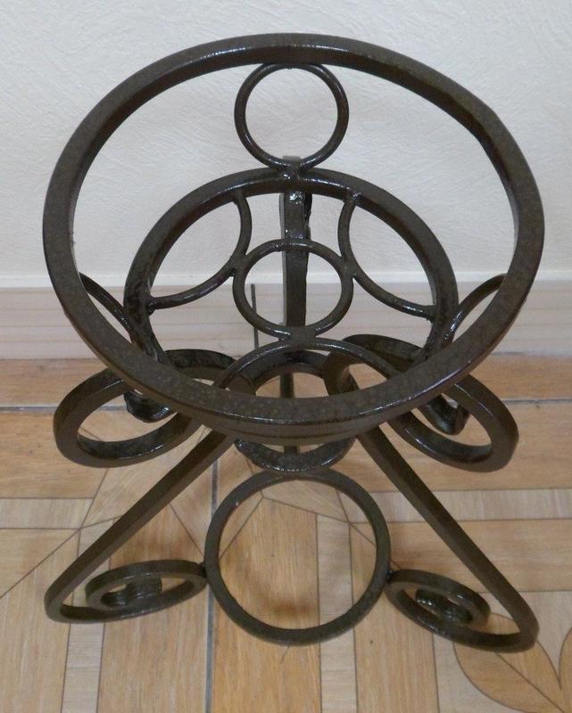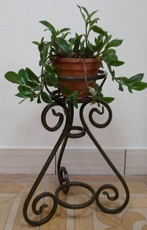 Кованая напольная цветочница с тремя опорными ножками под цветочный горшок.