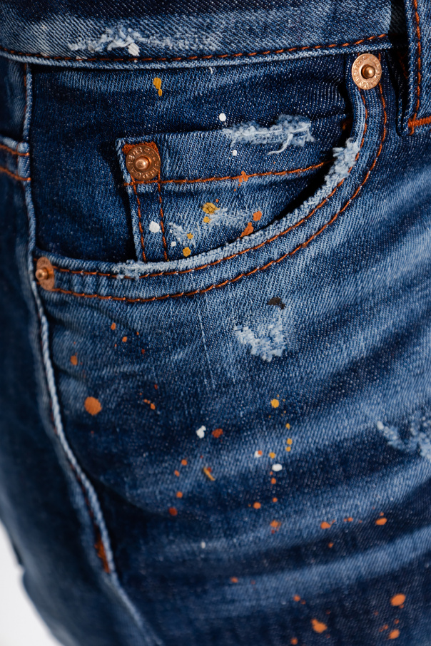 Dark blue ‘Jennifer’ jeans from Dsquared2. Crafted from cotton with a vintage treatment and paint spots, this pair features button fastenings, classic five pockets and a back patch with an embossed logo.