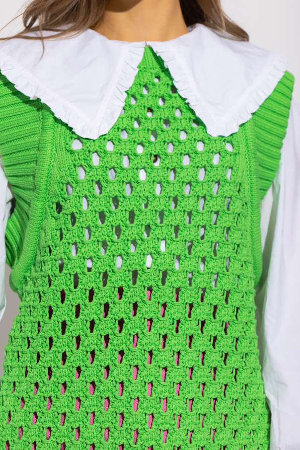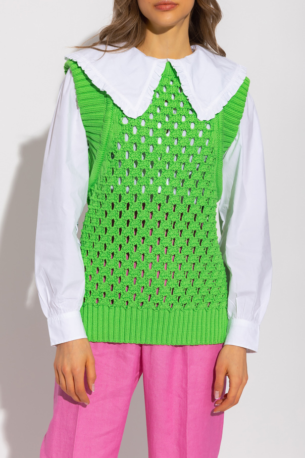 Green vest from Stella McCartney. Crafted from cotton with an openwork design, this style features ribbed trims on the round neck and bottom hem.