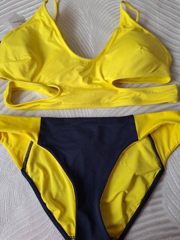 Яркий желтый купальник фирмы H&M, Tommy Hilfiger. Размер верха 80C, плавки M. Стан - верх новый, плавки идеальный. Есть маленькая заточка на плавках. Состав - 84% полиамид, 16% эластан Замеры в не растянутом виде. Плавки: ширина - 37 см, высота - 23 см. Верх подойдет на 80С, ширина верха по низу - 35 см, ширина верха по груди - 37 см, высота верха - 29 см. Есть тонкий поролон в чашечках. Возвращение нет