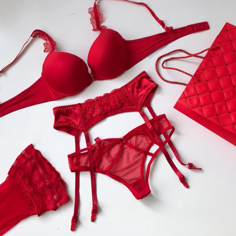 Акция ко дню СВ(лиф, трусики с открытым доступом, пояс, чулки)