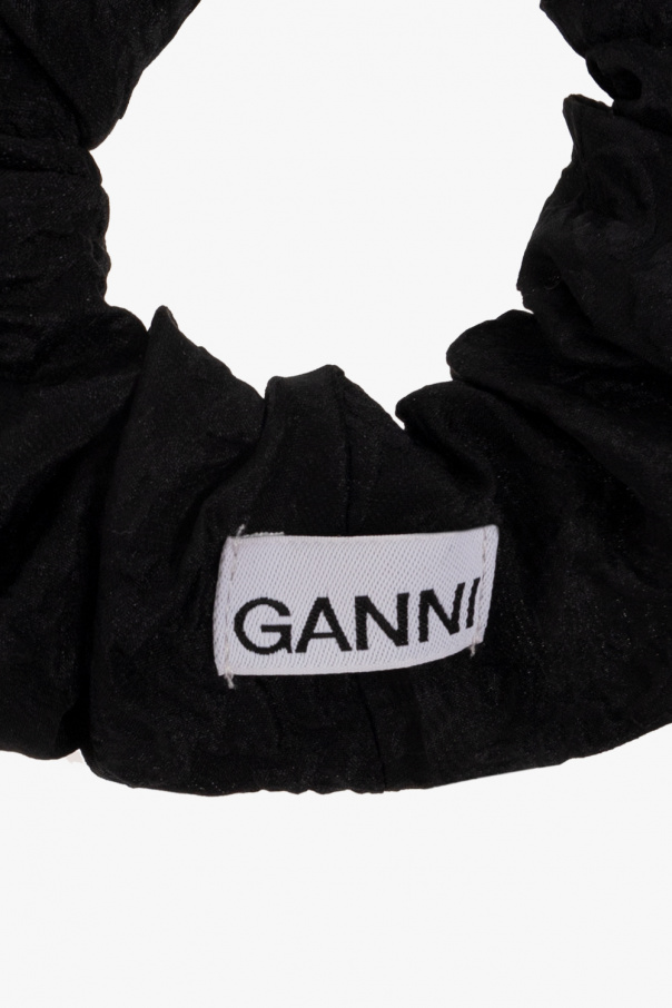 Black hair tie from Ganni. Made of recycled fabric, this item has decorative trimming.