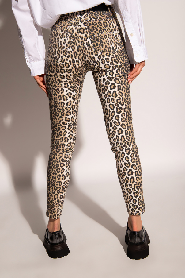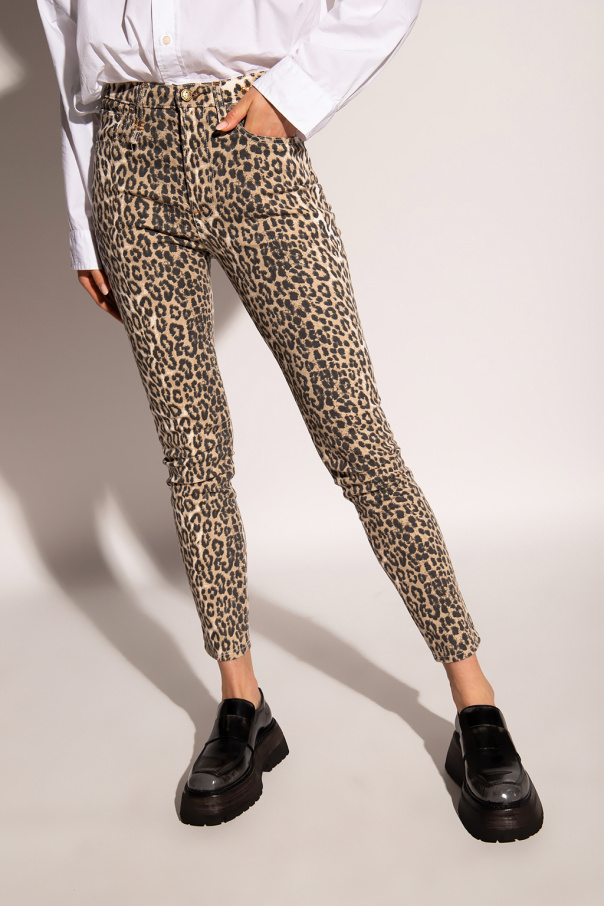 Beige and grey trousers from R13. Crafted from cotton with an all-over leopard motif, this pair boasts a high-waisted silhouette, a zip fly with a button, classic five pockets and tapered legs.