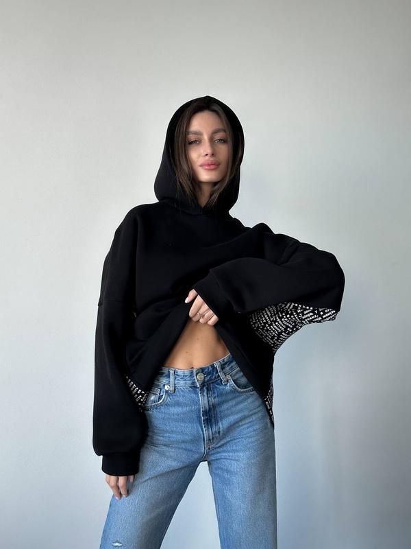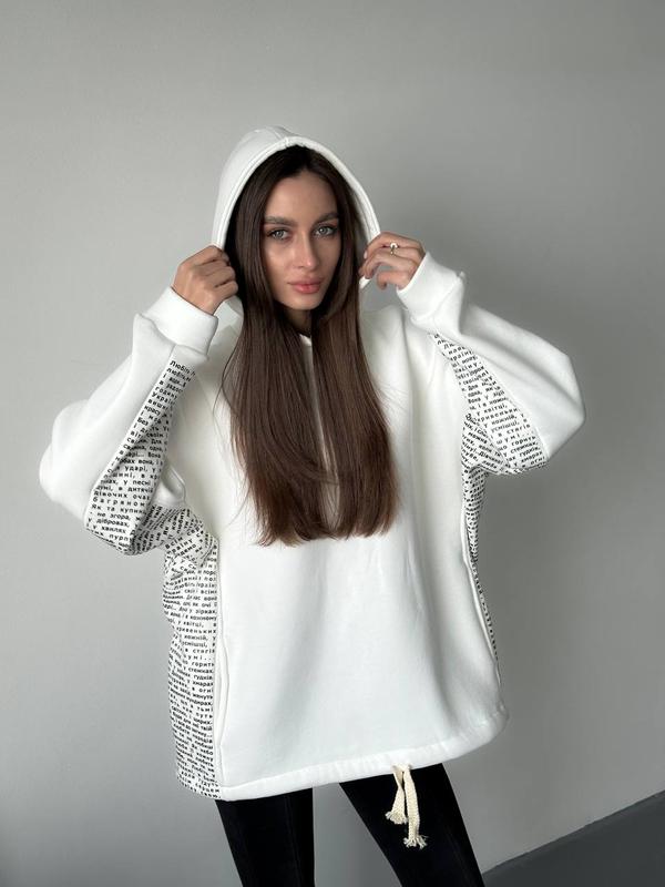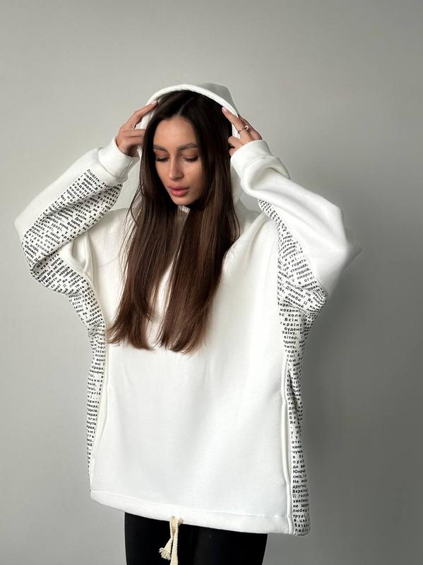 Стильный оверсайз худи из мягкой трехнитки на флисе, по бокам стихотворение «Любите Украину» В.М. Сосюра▪️размер: one size 42-48
