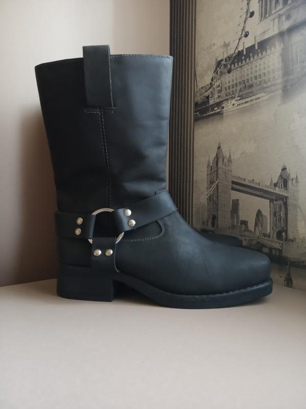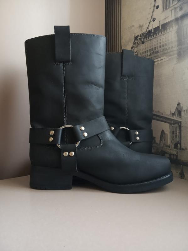 Дуже класні брендові оригінальні байкерські демісезонні чоботи з товстої м'якої натуральної шкіри з водовідштовхуючою пропиткою. Утеплені флісом. Стан- бездоганний, жодних н'юансів, все, як на фото, як нові.