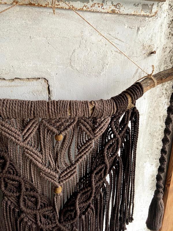 Подойдёт как фон для необычных фотосессий.Длина палки 69 см. Размер самого плетения (с ним кисточками по бокам) 52х75 см.