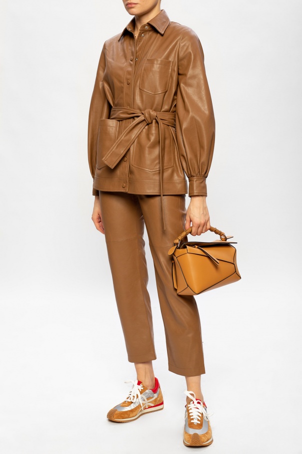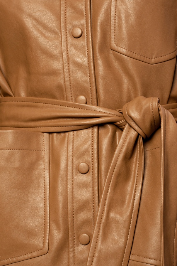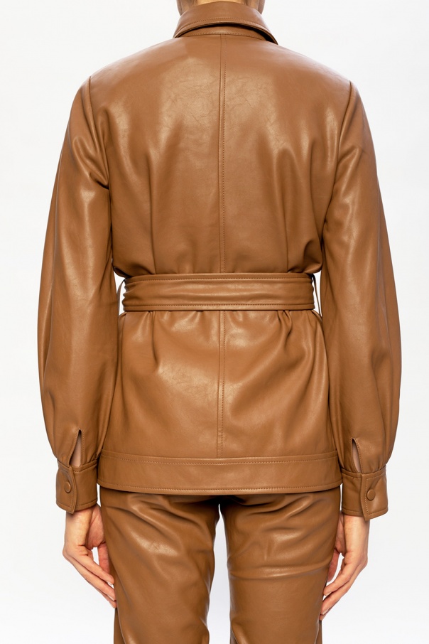 Brown jacket from Samsoe Samsoe. Crafted from vegan leather, this garment features snap fastenings, a waist belt and three slip pockets.