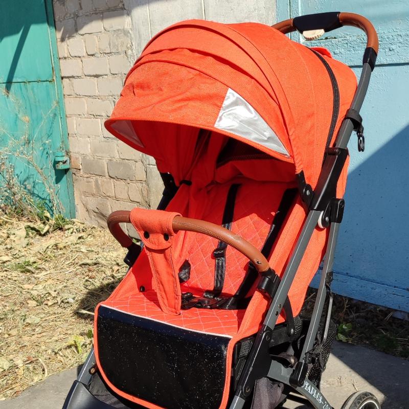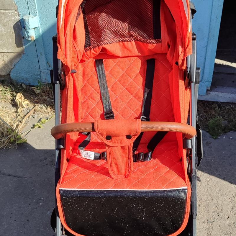 В хорошем состоянии, функционирует очень хорошо. Малыши много разных и эта очень понравится. Очень легко складывается, маневренна, легкая. Подходит в самолет. В уходе все просто, текстиль легко снимается и можно стирать в стиральной машине. Дощовик і москітна сітка в комплекті. Есть царапины на раме и коже. По дополнительной информации воспользуйтесь. Была приобретена новой. Есть чехол для транспортировки, более детально по телефону**************Состояние: ХорошееЦвет:- Коралловый