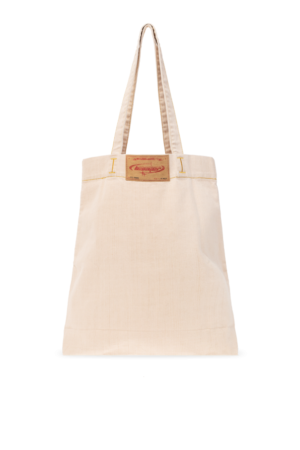 Light brown ‘Hippo’ shopper bag from Holzweiler. Crafted from cotton, this design showcases an embroidered gold-tone logo and logo patch at the back, two half-round handles and one internal compartment.
