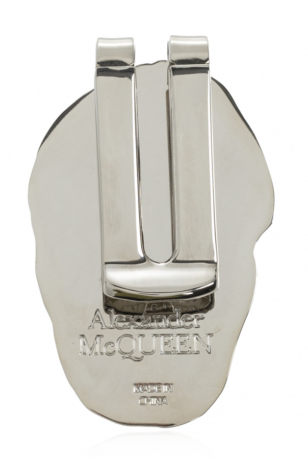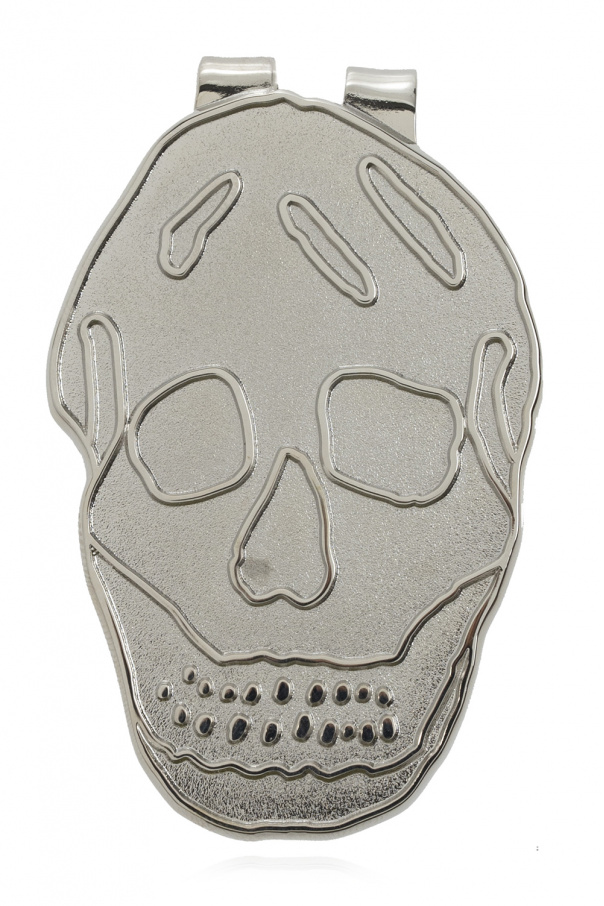 Silver-tone money clip from Alexander McQueen. Decorated with an applique featuring a skull motif.