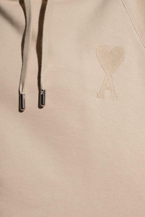 Beige sweatshirt with a drawcord-adjustable hood from Ami Alexandre Mattiussi. Crafted from organic cotton with the GOTS certificate, this style features Ami de Coeur embroidery on the front, a kangaroo pocket and a ribbed bottom hem and cuffs.