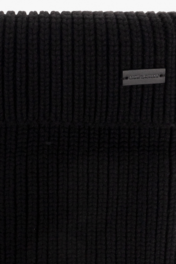 Black snood from Saint Laurent. Crafted from cashmere, this item features a logo patch.