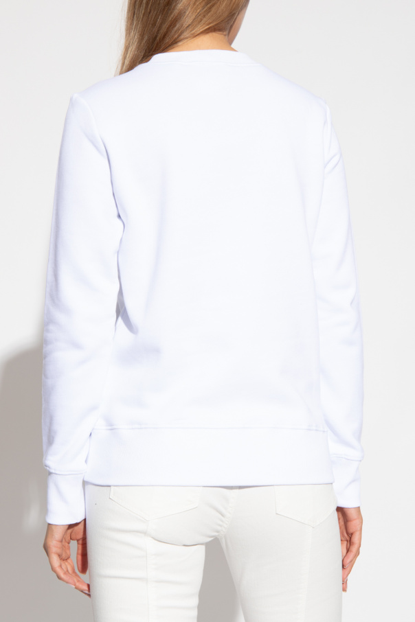 White sweatshirt from Versace Jeans Couture. Crafted from cotton, this garment features a gold-tone logo embroidery and ribbed edges.
