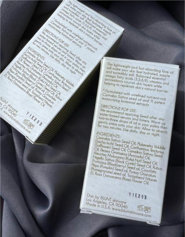 Легкое, питательное, но быстро впитывается масло для лица в день или ночь BLUNT SKINCARE Seed Hydrating Face Oil.