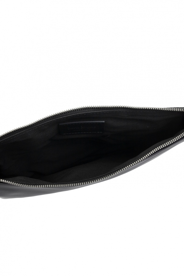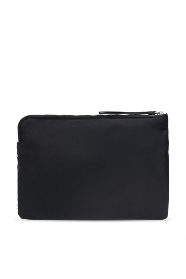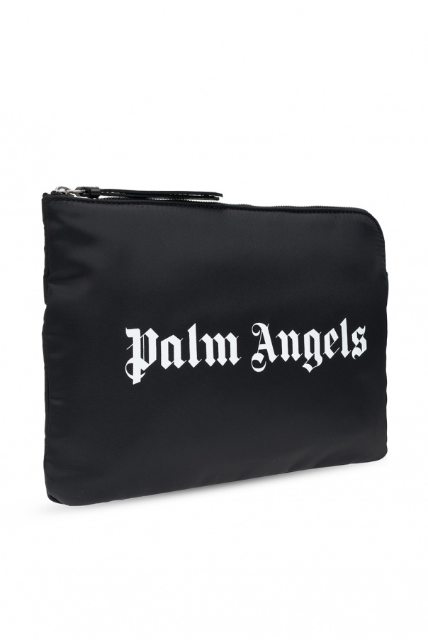 Black clutch from Palm Angels. Fastened with a zip, this design features a white logo print and one internal compartment.