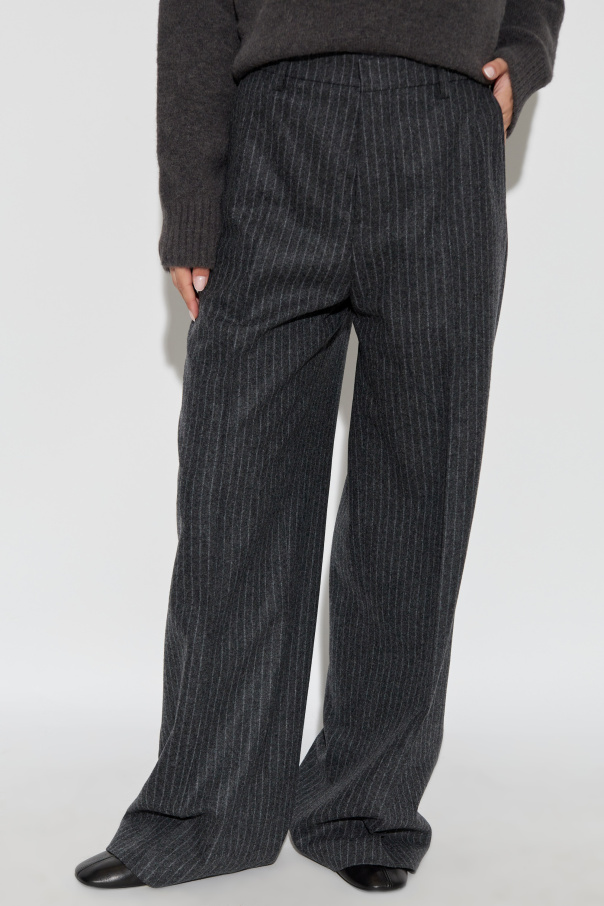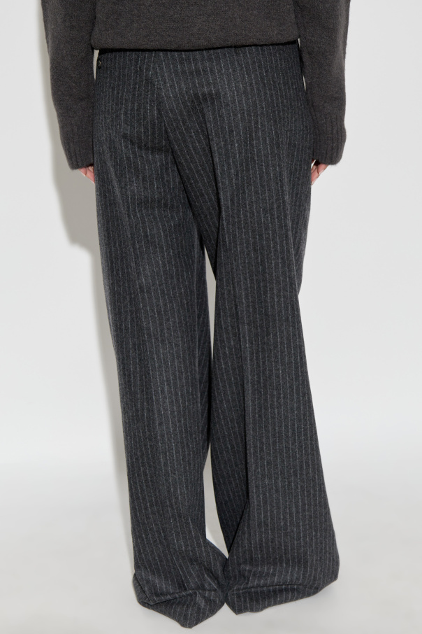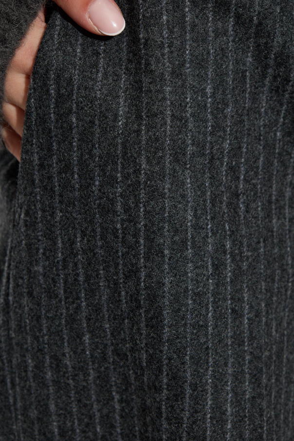 Introducing our Gray Striped Pants from the exclusive collection by Ami Alexandre Mattiussi. These pants epitomize the perfect blend of elegance and comfort, ideal for both daily wear and formal occasions. The dominant gray color, complemented by thin vertical stripes, imparts a timeless and sophisticated appeal. Crafted from high-quality wool, the fabric boasts a soft, slightly fleecy texture, ensuring both luxury and comfort. Designed with wide legs that drape loosely, these pants provide unparalleled comfort and freedom of movement. The simple yet chic cut aligns with a casual, yet elegant style, making them a versatile addition to any wardrobe. Key construction details include belt loops for added versatility, front pockets for enhanced functionality, and a minimalist design devoid of unnecessary adornments, highlighting their refined aesthetic. The pants are fastened with buttons and feature a total of four pockets, ensuring practicality without compromising style. Why You Should Buy This Product Exquisite craftsmanship from a renowned Parisian brand. Luxurious wool fabric with a soft, fleecy texture. Timeless gray color with elegant vertical stripes. Comfortable wide-leg design with practical belt loops and pockets. Minimalist, versatile style suitable for various occasions.