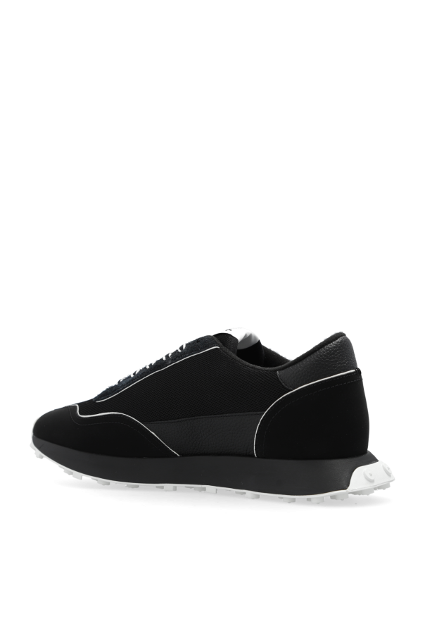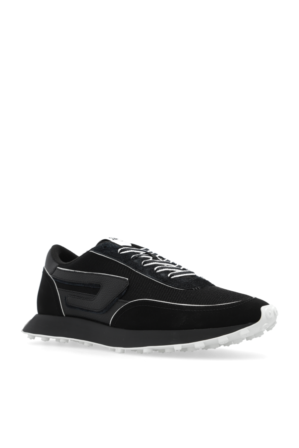 Black and white ‘S-RACER LC’ sneakers from Diesel. Made from cow leather, this lace-up model sits on a white rubber sole and features a black logo appliqué and mesh overlays.