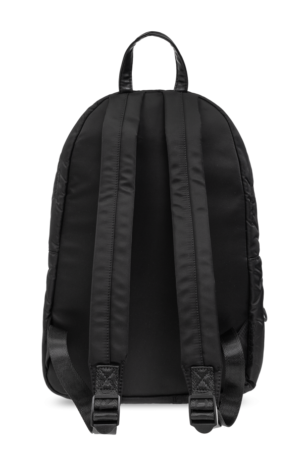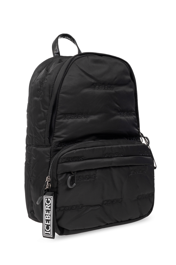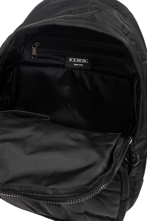 Black backpack from Iceberg. Fastened with a two-way zip, this design features an embroidered logo motif, branded handles in black and white, two zipped front pockets, half-round handle, adjustable shoulder straps, three internal slip pockets and one zip pocket.