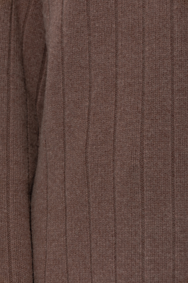 Brown turtleneck sweater from Toteme. Crafted from a blend of RWS-certified wool and cashmere, this style features a snug collar, long sleeves and ribbed trims on the bottom hem and cuffs.