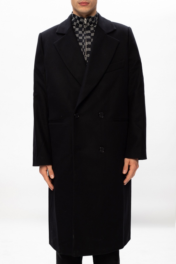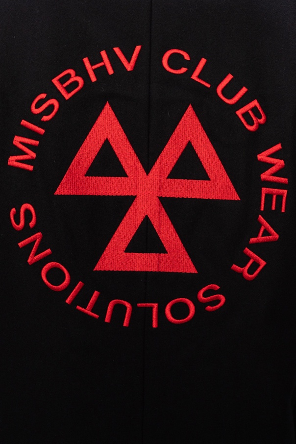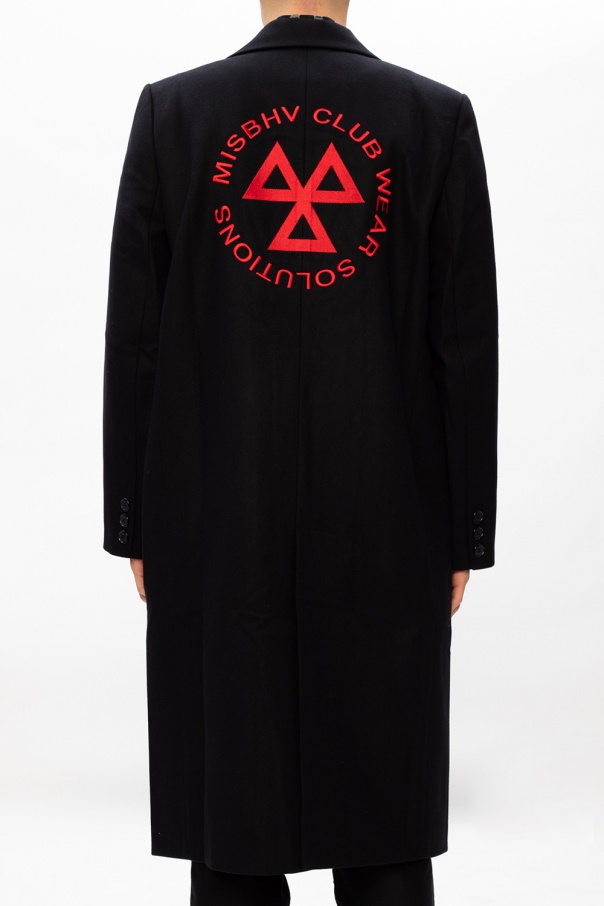 Black 'CWS' coat from MISBHV. Crafted from wool, this piece of outerwear comes with button closing, notched lapels, two jetted pockets on the front as well as single vent and red embroidery on the back.