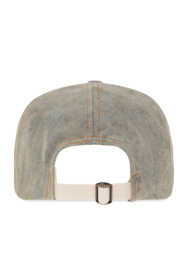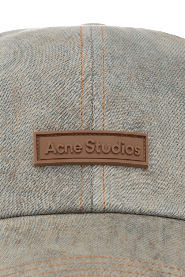 Light blue baseball cap with a vintage effect from Acne Studios. Made of denim, this item features a brown rubber logo patch on the front and adjustable buckle strap at the back.