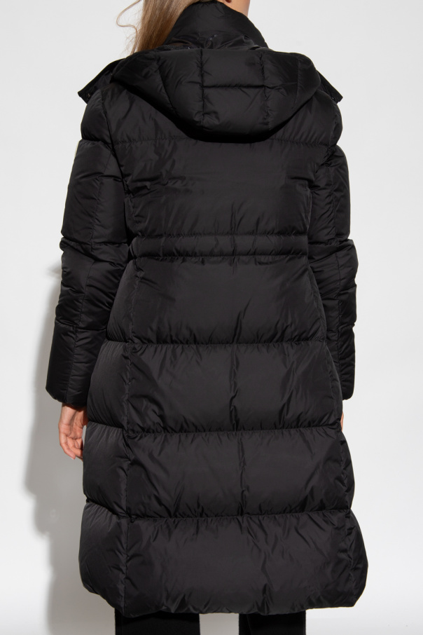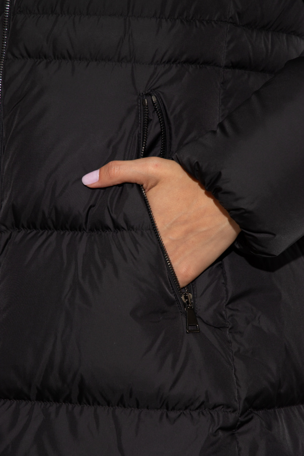 Black ‘Broffier’ down coat from Moncler. Fastened with a zip, this design features a cream, navy and red logo patch, detachable hood, two zip pockets and long sleeves with ribbed cuffs.