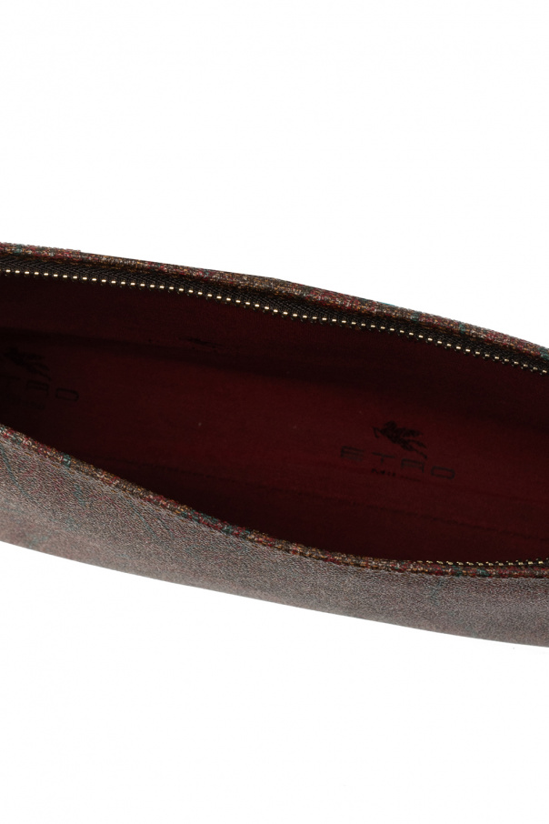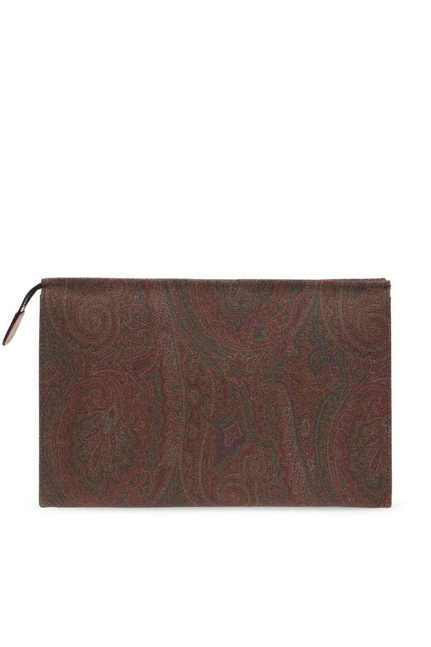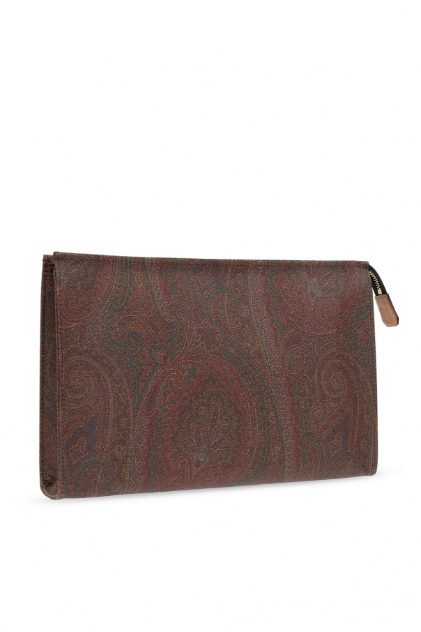 Brown wash bag from Etro. Crafted from canvas printed with the brand’s signature paisley motif, this style has zip fastening and one internal compartment.